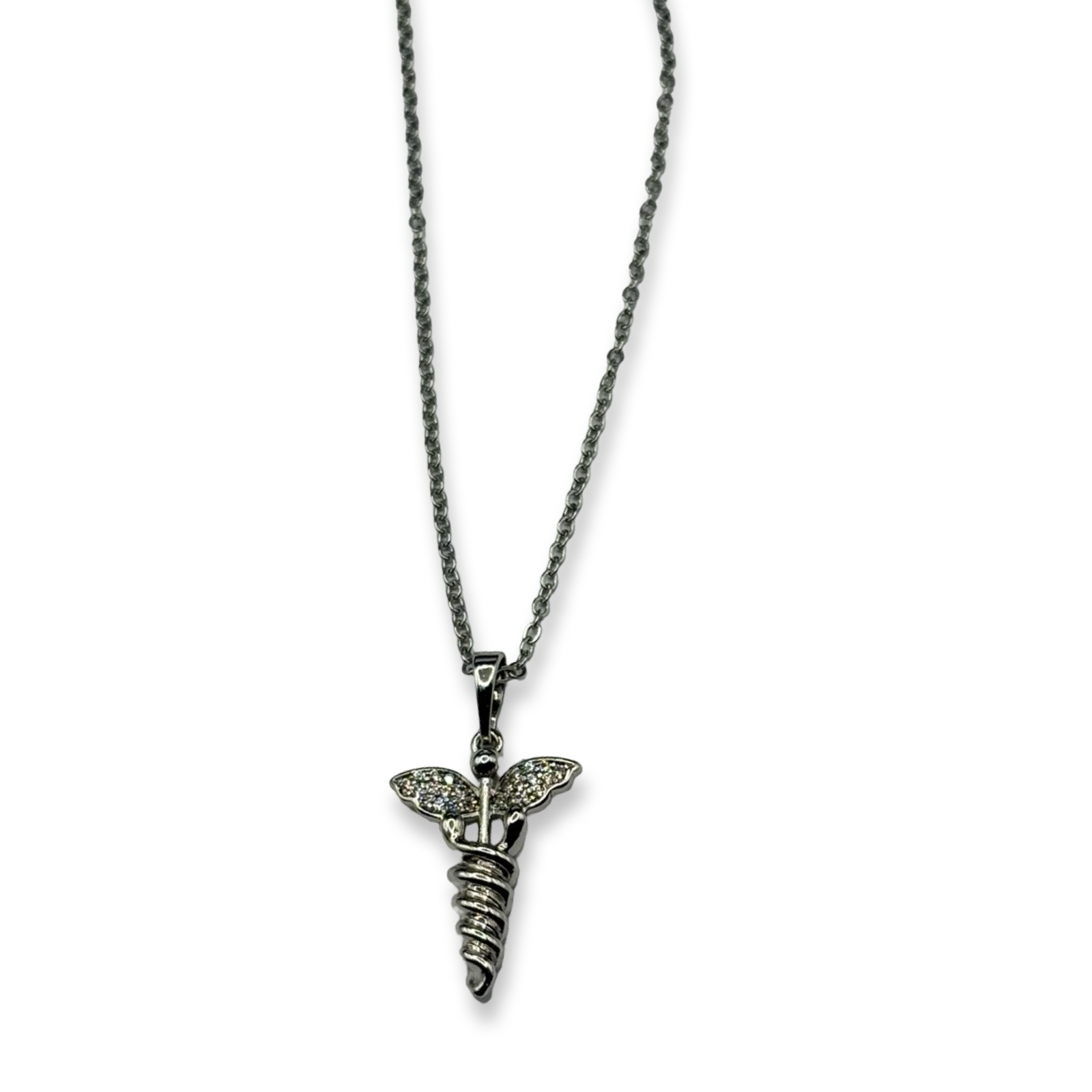 Silver Diamond Caduceus Necklace
