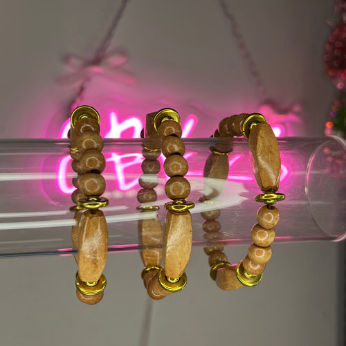 Light Brown & Gold Earthy Babe Beaded Bracelet