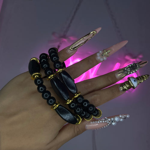 Gold & Black Statement Earthy Babe Beaded Bracelet