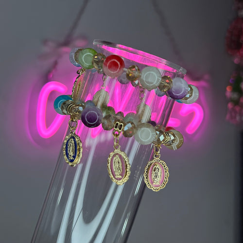 Rainbow Virgencita 3 Charm Beaded Bracelet
