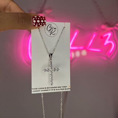 Silver Diamond Cross Necklace