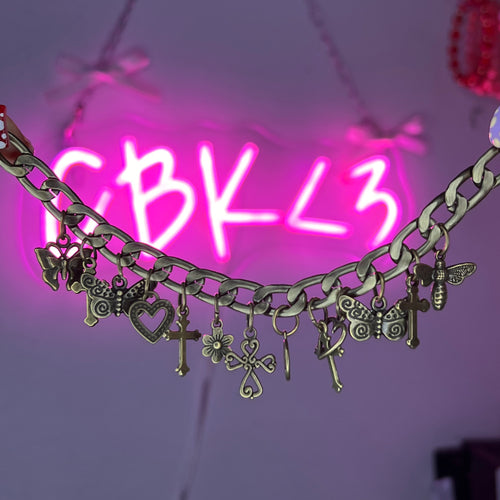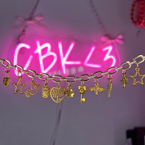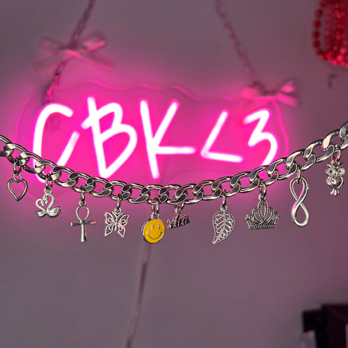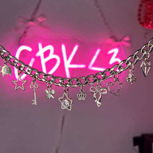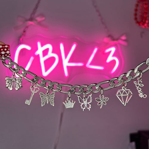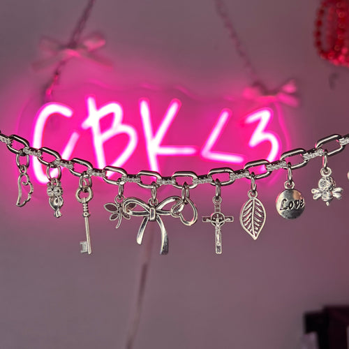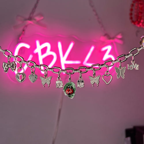 Silver Coquette Lover Girl Diamond Charm Bracelet