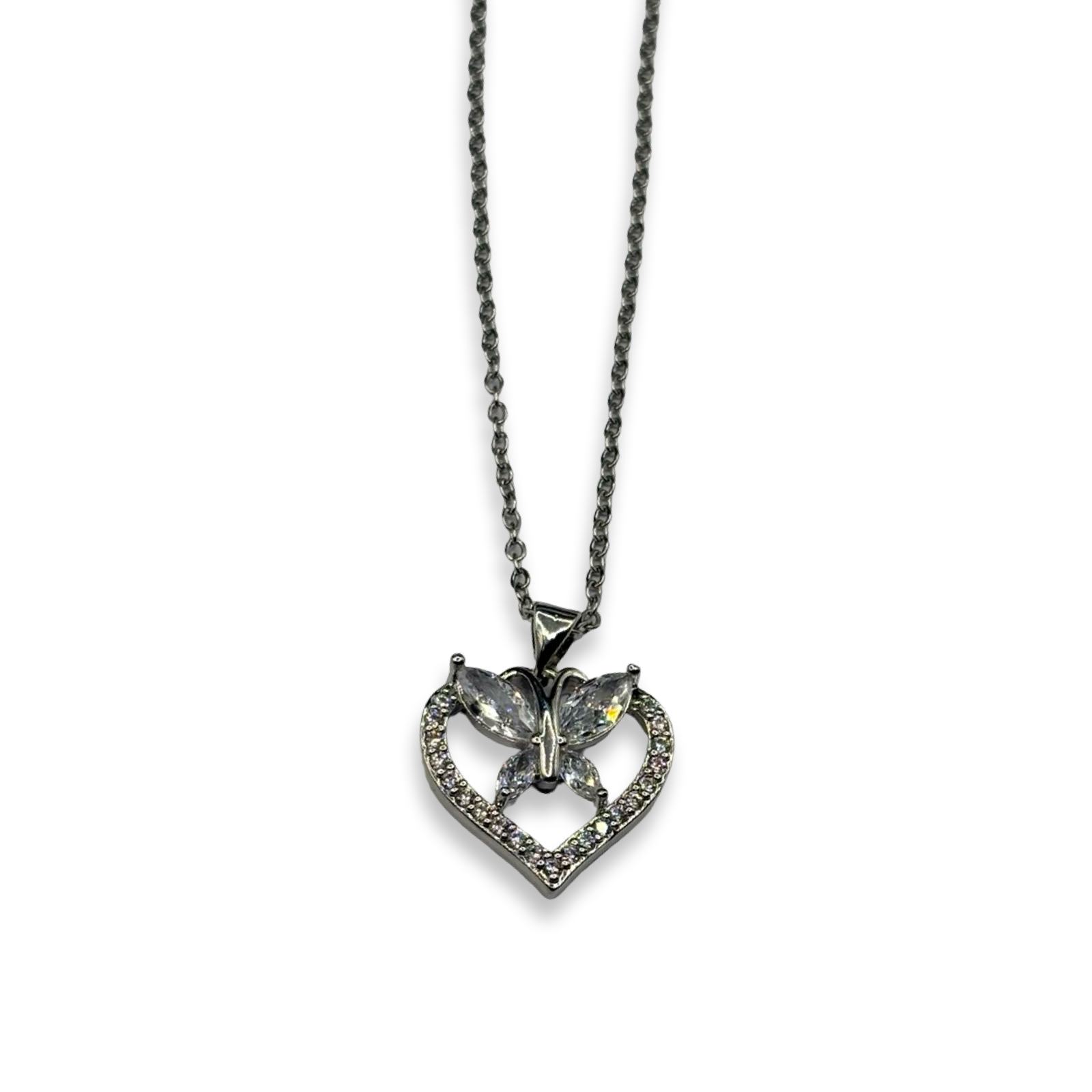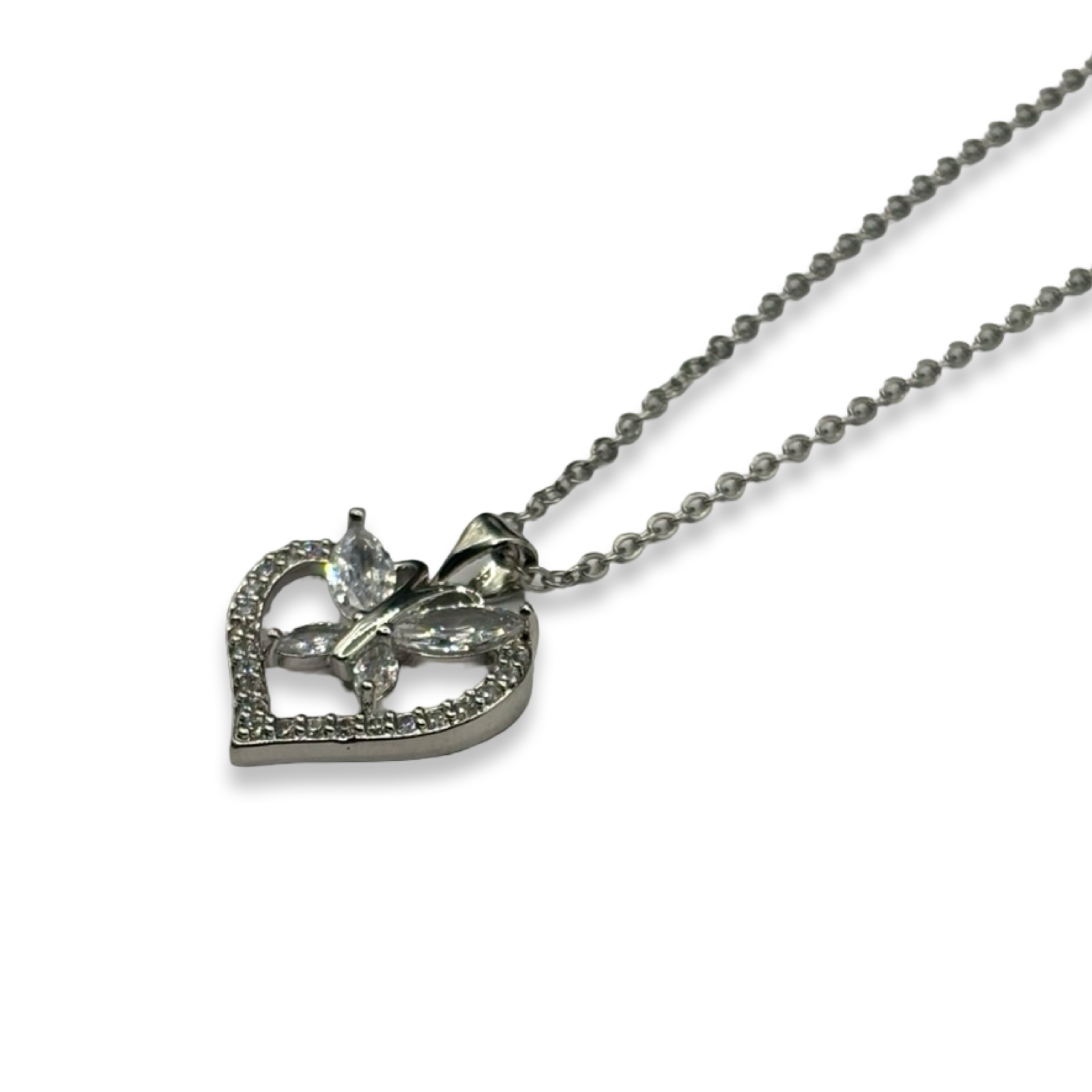 Silver Mariposita Heart Diamond Dainty Necklace