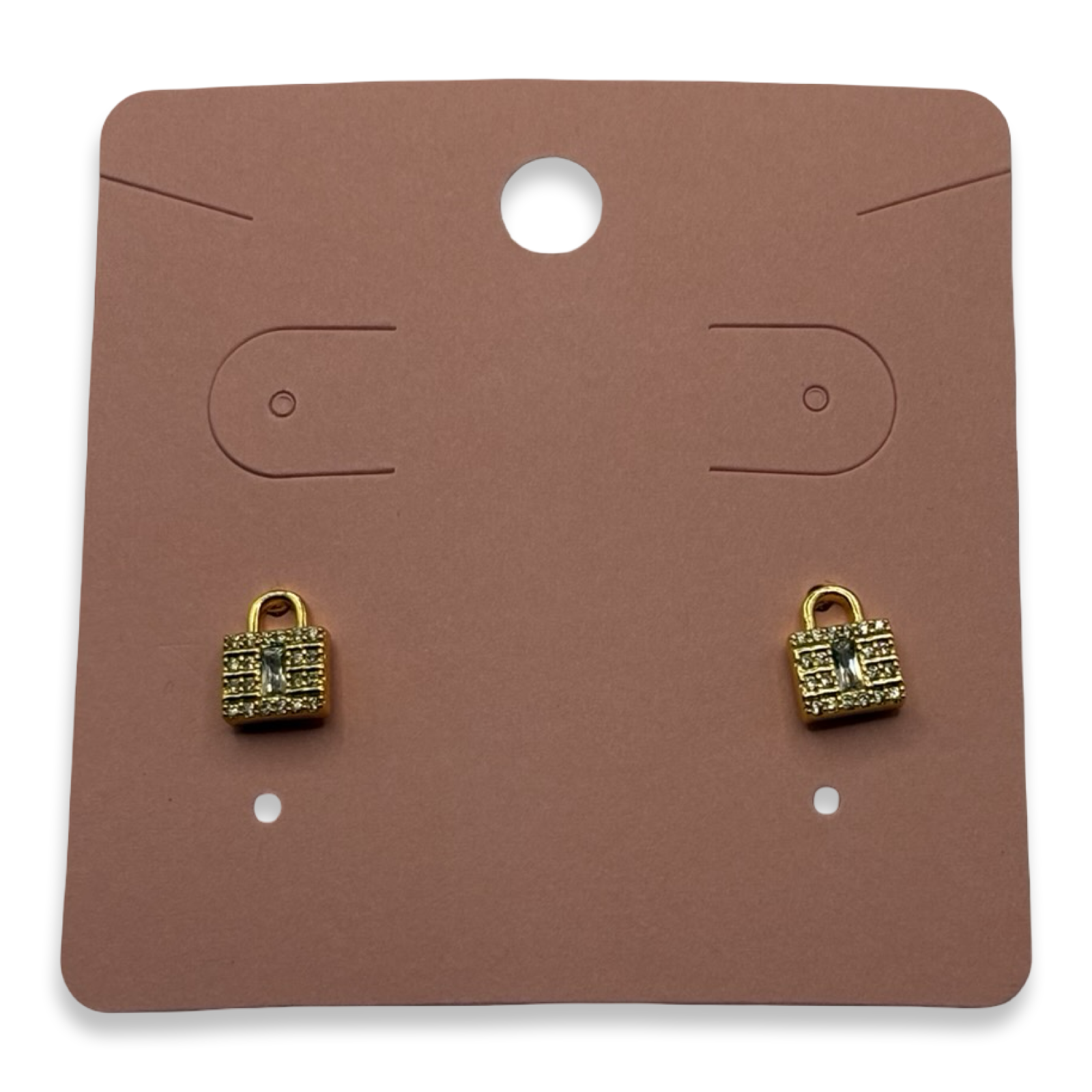 Gold Diamante Love Lock Stud Earrings
