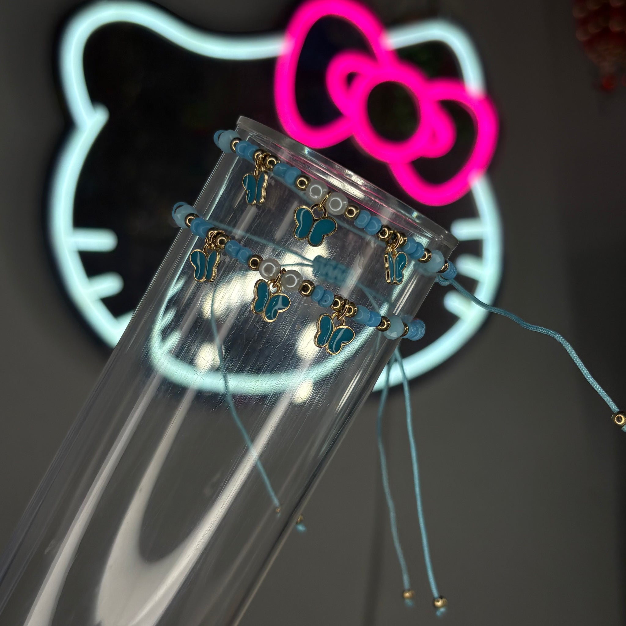 Blue n Gold 3 Butterfly Adjustable String Bracelet